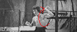 これは「怒りの鉄拳」、「ドラゴンへの道」では一瞬しか使われていなかった技術で、死亡遊戯から多用されている。