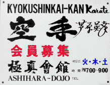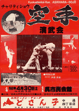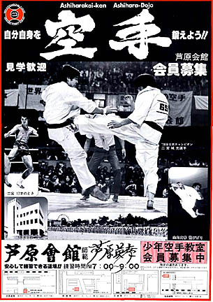 ![]() 一度だけ行われた演武会のポスター この時は、芦原先生を始め 中元師範等の当時の芦原門下 最強の先輩方が集まった。 |